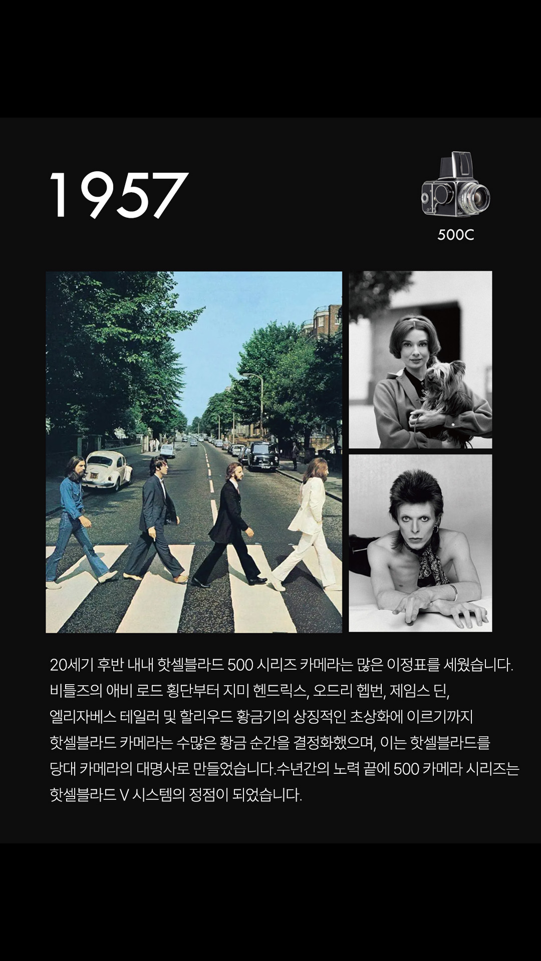 그리고 비틀즈와 오드리 햅번 등 시대의 아이콘을 기록한 500 시리즈 까지